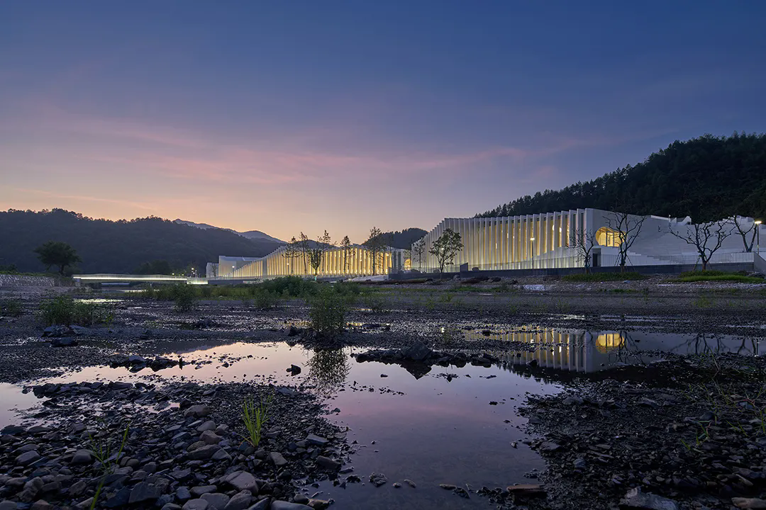 这座扎根于宣城泾县的建筑,以现代设计语言诠释了千年宣纸技艺,将匠人精神转化为可游可触的山水画卷,最终打造出承载东方诗意的宣纸文化精神地标。