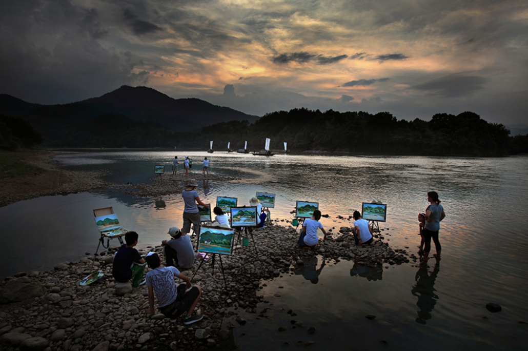 当代艺术发生公共转向后,艺术家走进田野、介入乡村,艺术乡建行动逐渐在中国大地全面铺展。艺术乡建是中国探索新农村建设和城乡融合发展过程的重要环节,也是自上而下的“自觉”与自下而上的“自发”相结合的有益探索。在此过程中,需要充分发挥艺术家的创造性,整合现有文化资源,使乡村传统元素转换创新,用发展的逻辑与时代融合。十九年来,丽水莲都始终牢记习近平总书记重要嘱托,紧密围绕艺术小镇、创作小镇、旅游小镇“三镇合一”的发展定位,接力做好古堰画乡保护传承、活态利用、人文交流三篇文章,推动小镇生态、文态、业态、形态融合发展,聚力打造“诗画浙江”“文化浙江”之典范、物质与精神双富裕的乡村振兴鲜活样板。古堰画乡并没有局限于旅游业的发展,而是打通了旅游、教育行业的经络,使旅游行业成为艺术教育设施的资本来源,艺术教育行业打造口碑,推动文化旅游发展。基于全域旅游实现“旅游 + 油画产业”“旅游 + 民宿产业”“旅游 + 养生农业”“旅游 + 创客产业”的产业融合思路。这些源于古堰画乡的实践,牵动着整个丽水生态旅游绿色经济的发展。