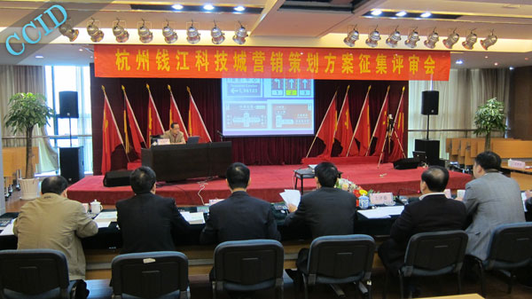 On November 10th, Hangzhou Qianjiang Technology City Marketing Plan Collection Assessment was held in Hangzhou Qianjiang Economic Development Area Administrative Committee .China Academy of Art Creative Industry Development Company was invited to participate in this assessment.Professor Cao Zengjie--Director of China Academy of Art Urban and Rural Development Research Institute, Professor Sun Shijie of Public Art College, Wang Xueqiang Director of Marketing Department took part in this assessment.