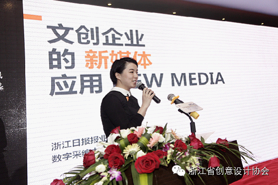 浙报报业集团数字采编中心运营主管王熙旸发表“文创企业的新媒体应用”的主题演讲。